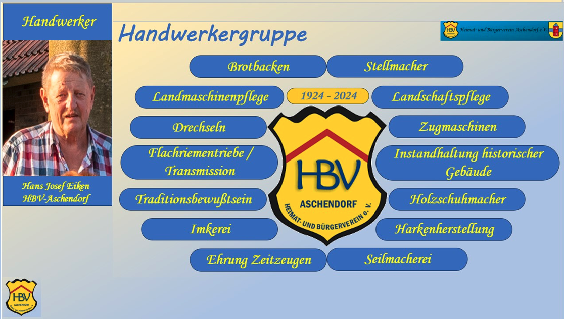 Unsere Gruppe besteht aus ca. 10 Männern, die sich  jeden Dienstag von 9-12 Uhr im Handwerkerhaus auf dem Heimathof treffen.