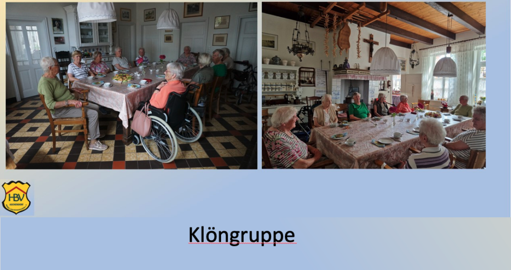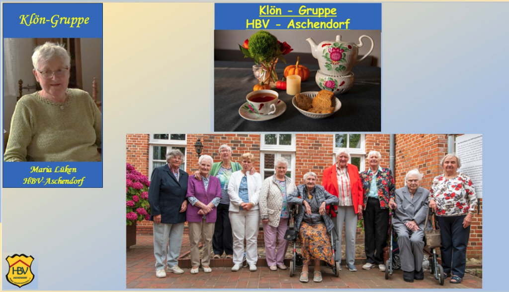 Wir sind ca. 20 Seniorinnen und Senioren, die sich an jedem letzten Dienstag im Monat nachmittags im Heimathaus treffen, gemeinsam Tee trinken und klönen.